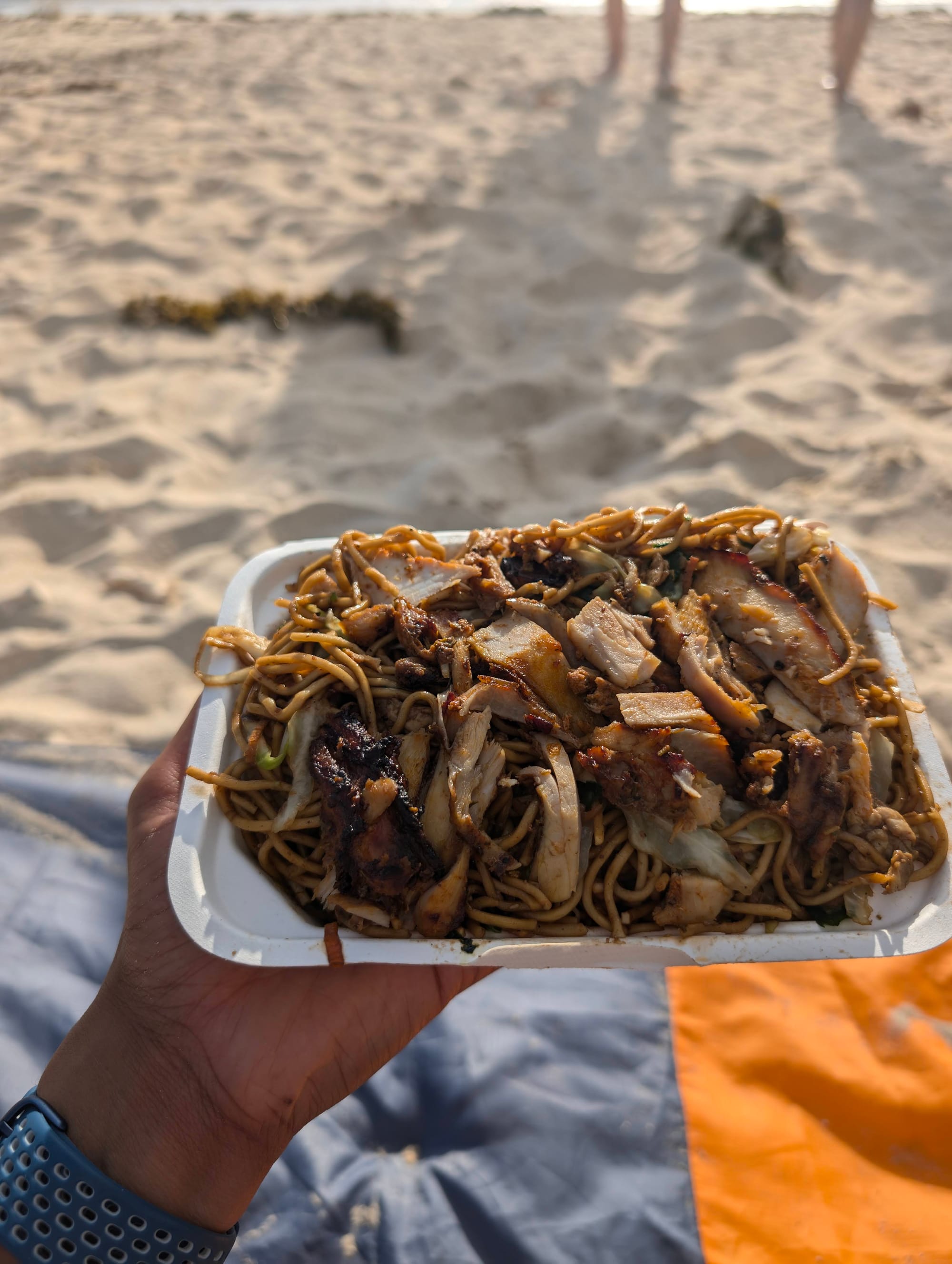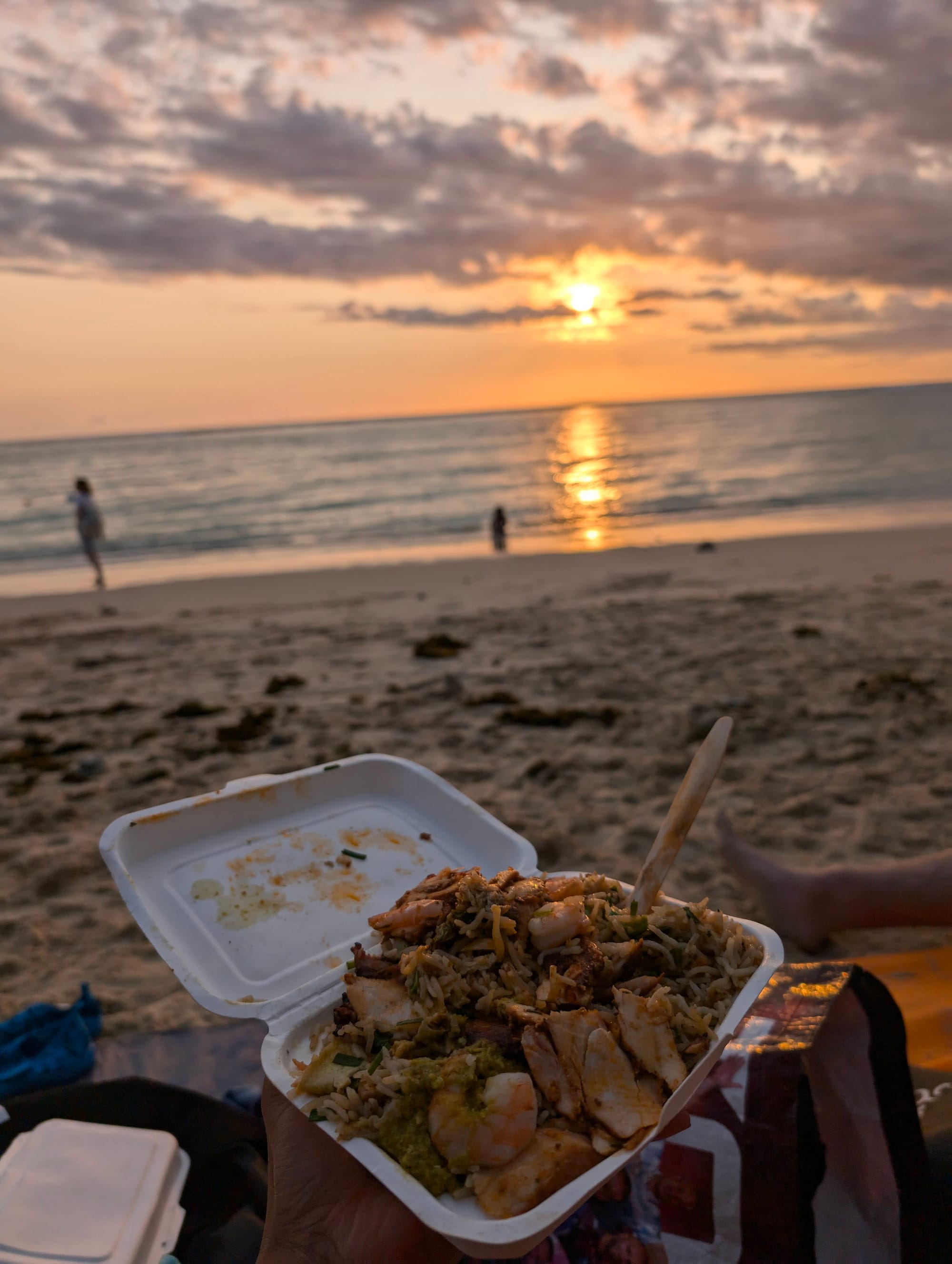 Mauritian fried rice, smoky from the wok and flecked with bits of egg, prawns, and Chinese sausage. Every chef has a secret ratio of soy to oyster sauce, and every diner swears theirs is the best. It’s the dish you order when you can’t decide what you want – because it’s everything at once. Even better when enjoyed on the beach!