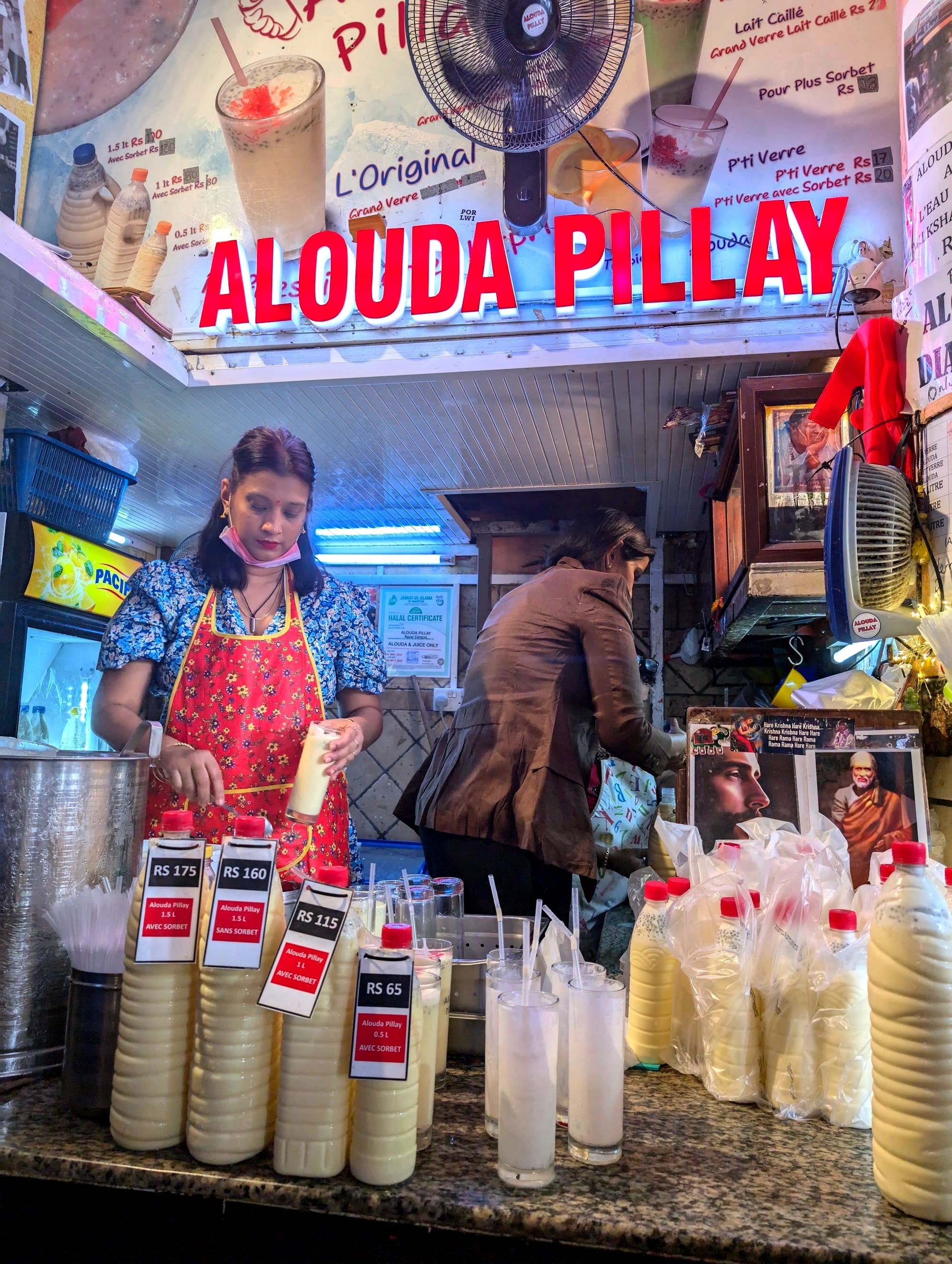 A sweet, milky drink with basil seeds, usually found at the Port Louis market. Cold, colourful, and refreshing. A signature Mauritian beverage, perfect on a hot day.