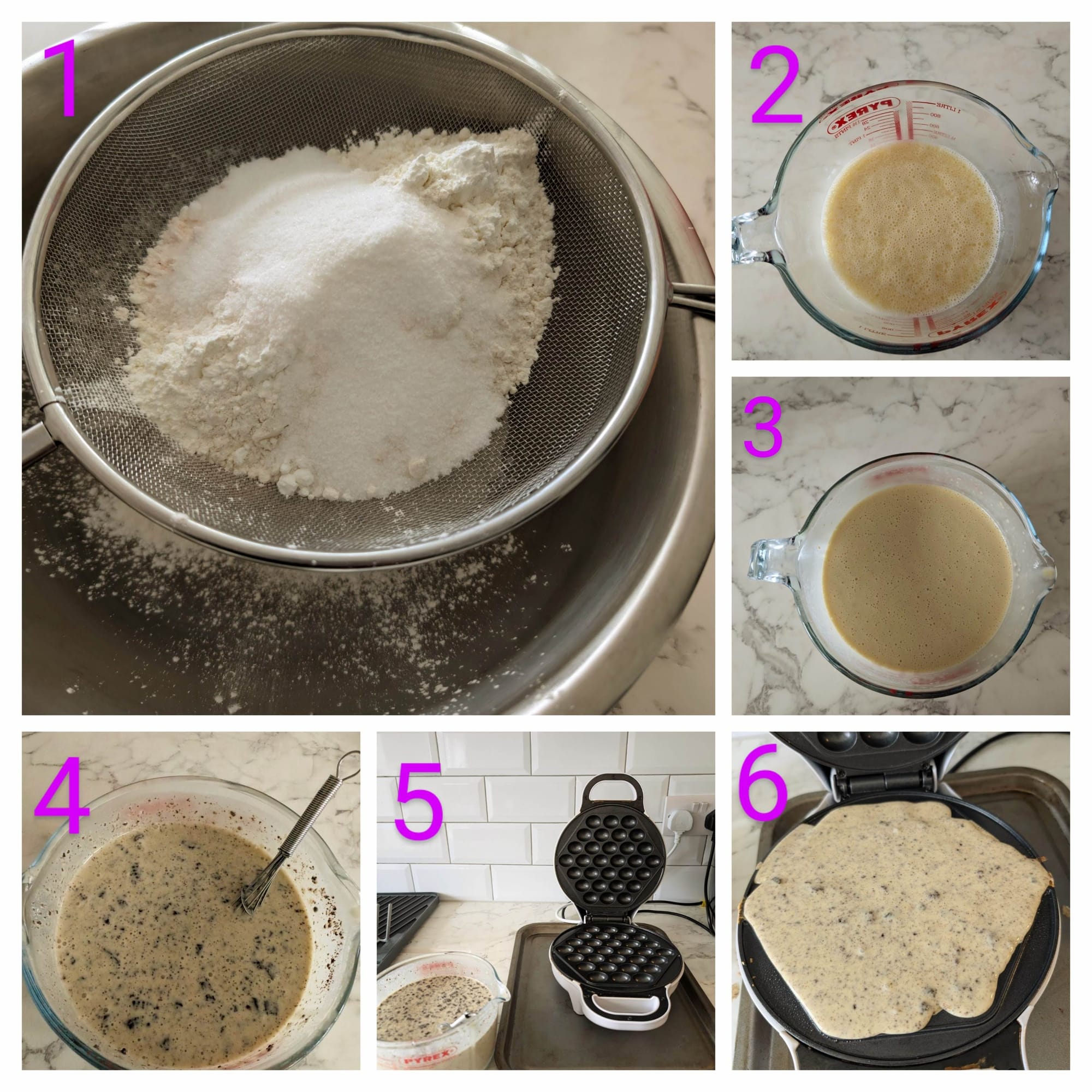- Pour into your bubble waffle maker and cook until golden.