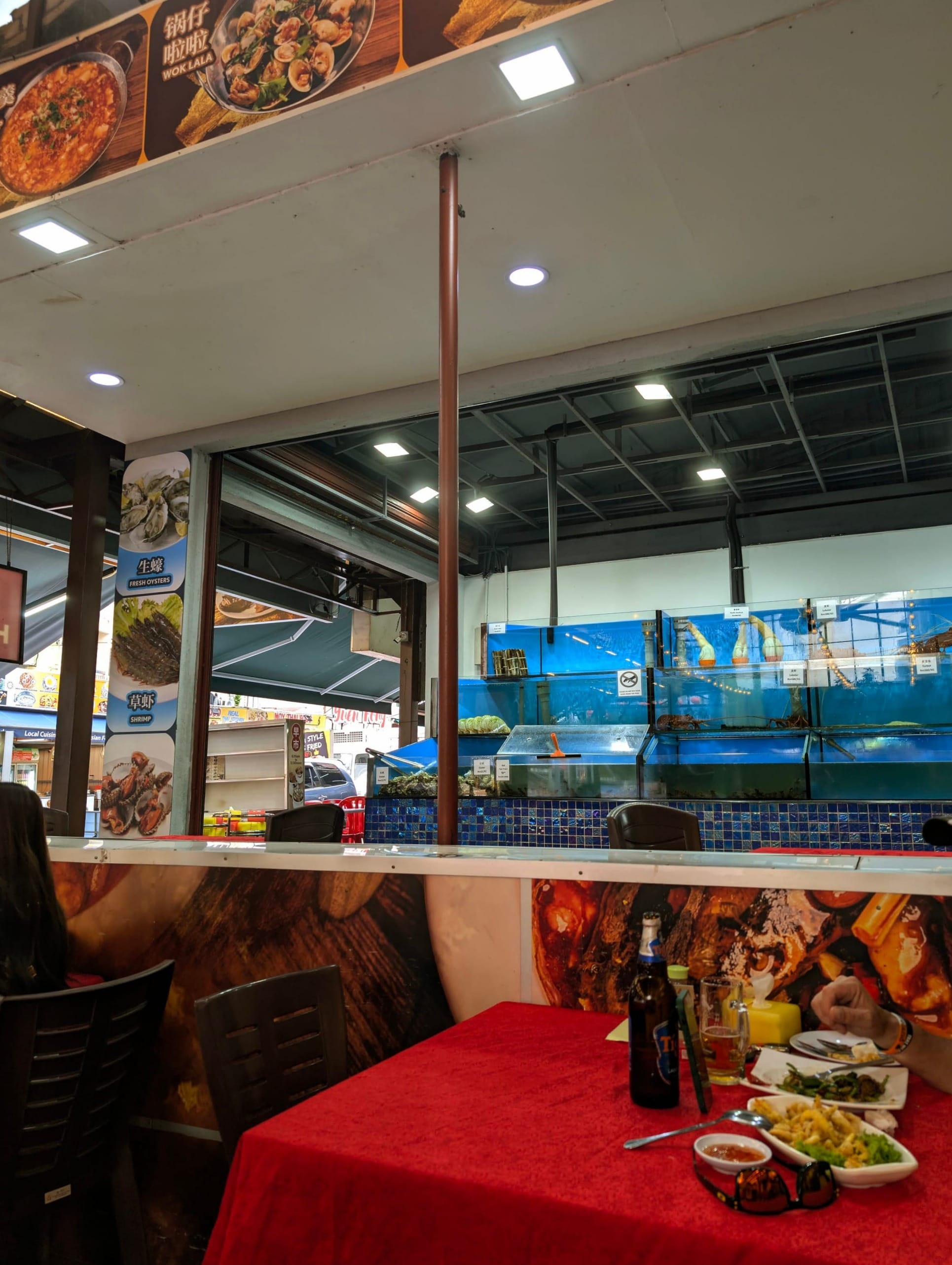 One night we chose a restaurant that had big water tanks full of live seafood — fish, lobsters, oysters, clams, even geoduck. I have to admit, it felt a bit strange watching your dinner swim around before it ended up on the plate. A little unsettling, but fascinating too.