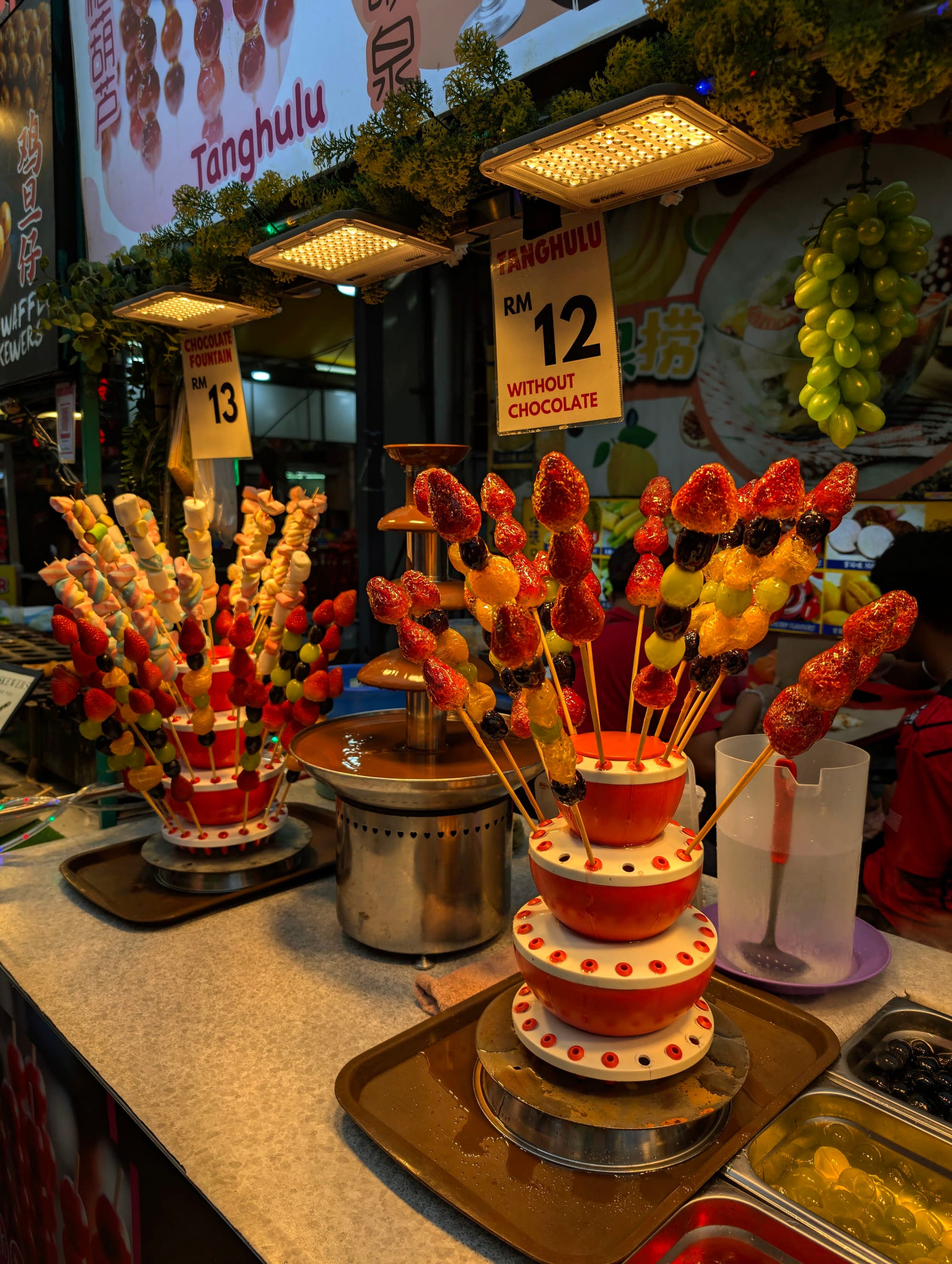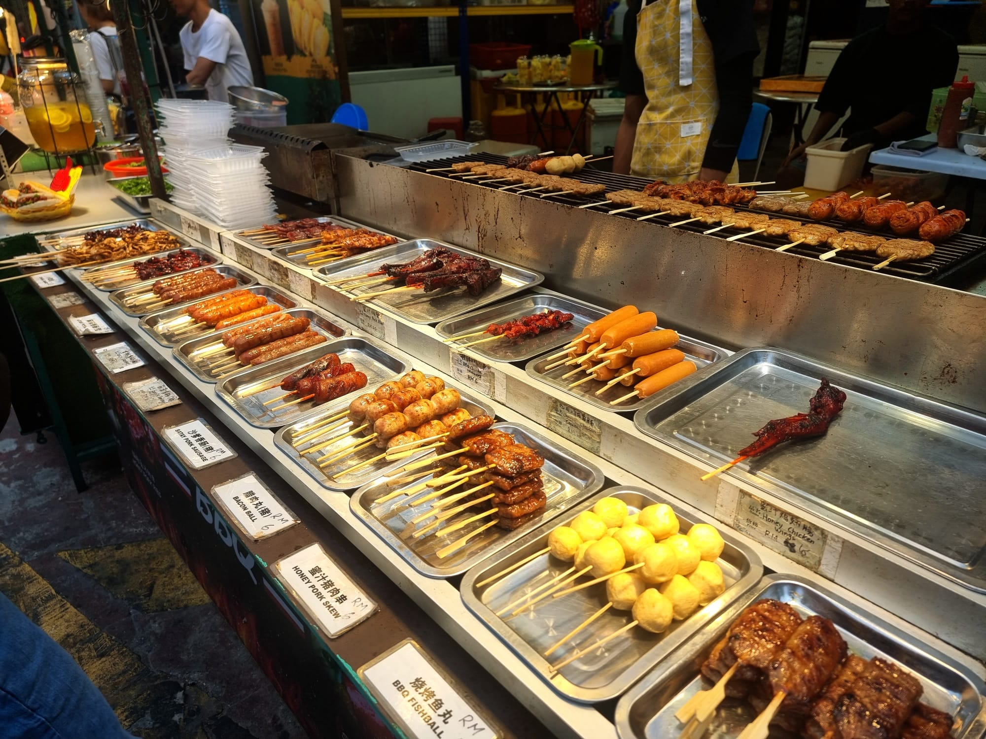 If you’ve been to KL, you’ll know that afternoon rain is almost guaranteed. Most days, the heavens open sometime between 4pm and 6pm. Watching the rain pour down over Jalan Alor was an experience in itself. The stalls were prepared, with awnings and pergolas that snapped into place as if by magic. I even started to enjoy walking through the rain — a welcome break from the heat and a good excuse to grab another drink or snack while we waited it out. Umbrella hawkers appeared instantly, of course. They were part of the rhythm of the place.