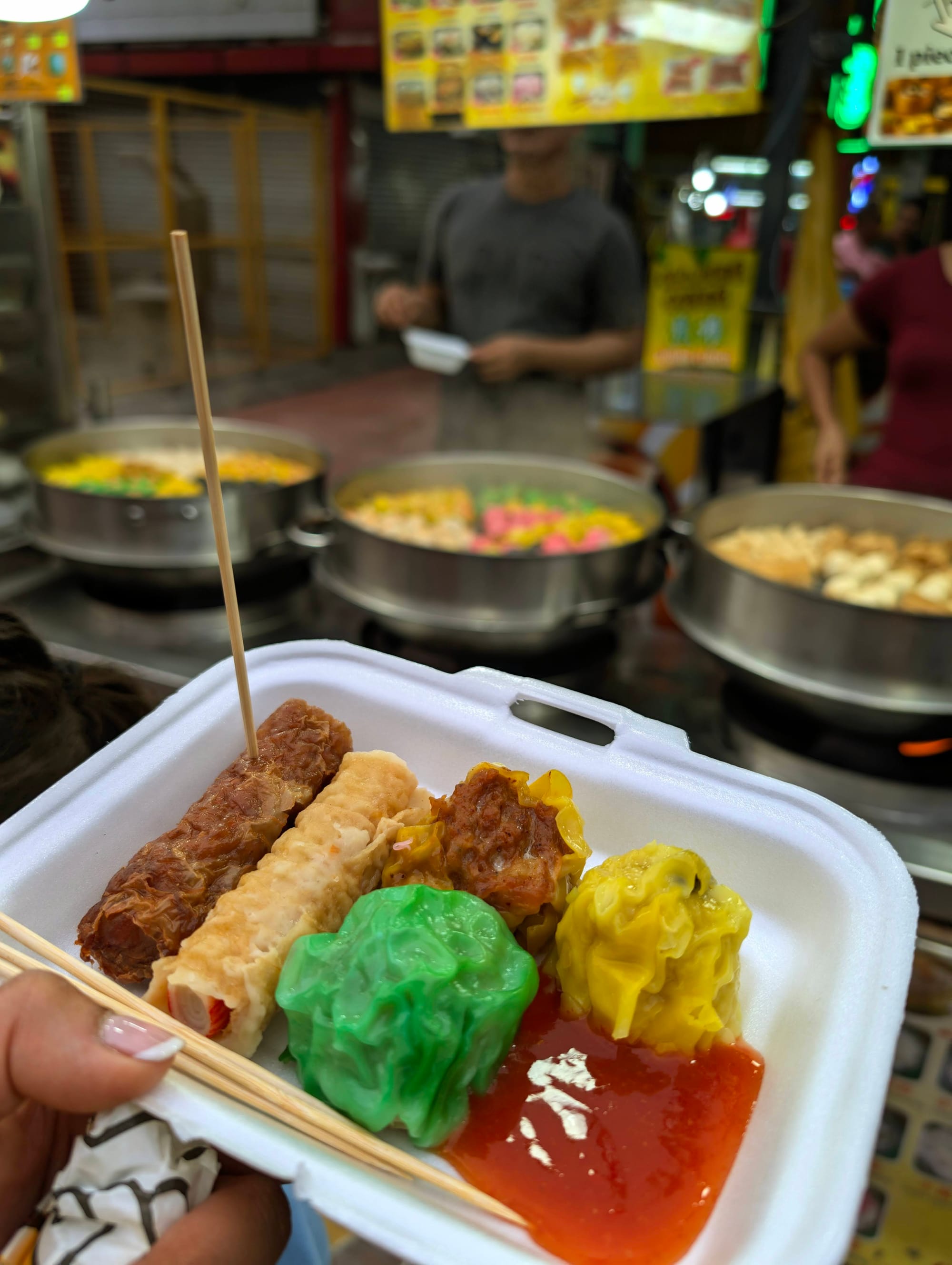 We came back the following night and I was stunned. The place had transformed. It was as if someone had flicked a switch and turned on the magic. The neon lights were buzzing, the air was thick with the scent of sizzling meat, and the street was absolutely alive.