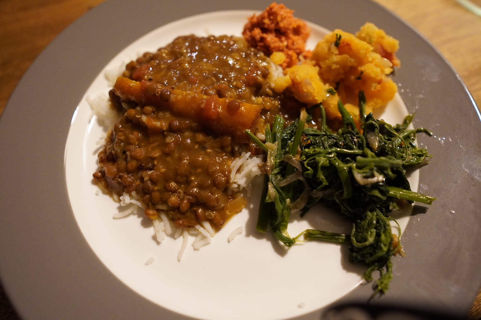 Here is a meal I think about more than any restaurant I have ever reviewed. No ambience score, no service notes — just my Mom's kitchen, and the particular smell that hits you the moment you walk through the door after two years away. Rice on the stove. Lentils slowly thickening. Brede chouchou wilting down in a pan. Satini pomme de terre waiting quietly on the side. Nothing fancy. Nothing that would make a menu. And yet, without question, the best food I eat all year.