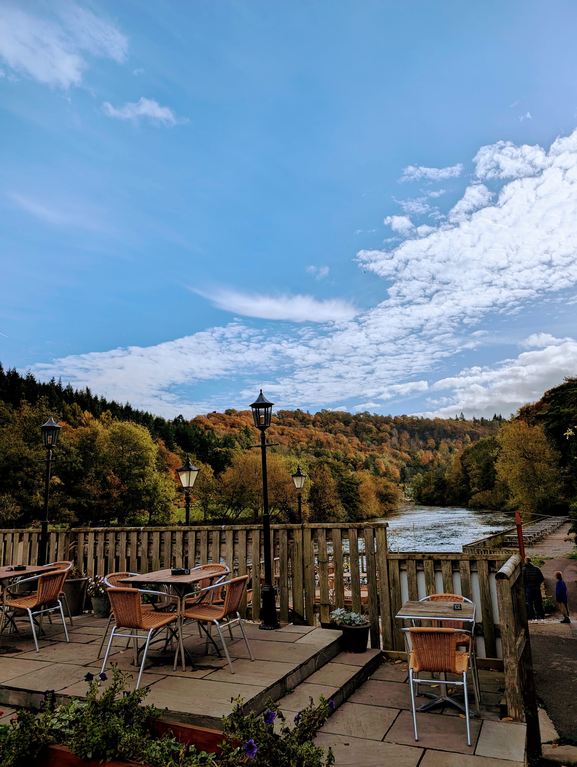 The inn also doubles as a small riverside hotel, and I can imagine its setting makes it hard to leave. The surrounding Wye Valley National Landscape is all woodland, cliffs and winding trails. A short climb takes you to Symonds Yat Rock, where the valley opens in both directions and peregrine falcons trace the air above the water. Across the bend lies Biblins Bridge, a narrow wooden suspension footbridge that connects both banks with a faint sway – a loop worth planning around.